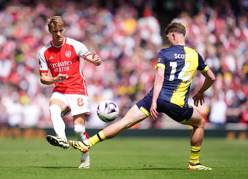 Ødegaard is no slouch off the ball either. The midfielder pushes up and leads Arsenal’s press with ferocity.