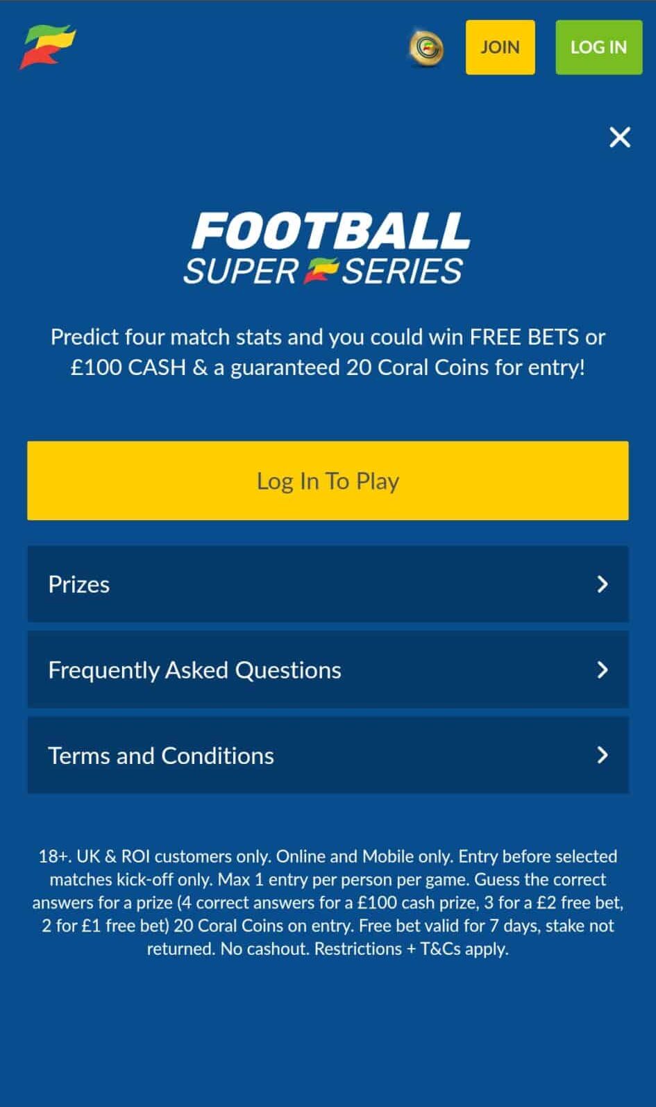 Coral's Football Super Series is a free-play game where players can win £100 in cash. It is all about how much you know.