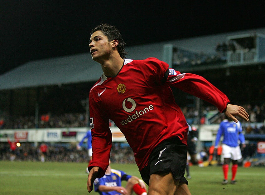 Moving back to early in his United career, Ronaldo showed his left foot could be just as deadly as his right, with a rasping effort away to Portsmouth in February 2006. Ronaldo was still playing on the right wing in those days, deployed as a more traditional winger.