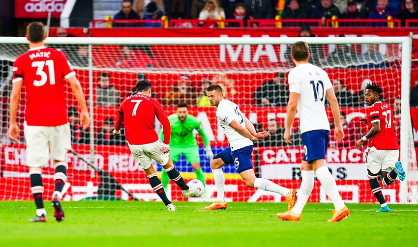 Finding a pocket of space 30 yards out, and with Eric Dier inexplicably backing off, Ronaldo let rip. His powerful strike bent perfectly past Hugo Lloris and nestled in the top left corner, sending the Stretford End into raptures.