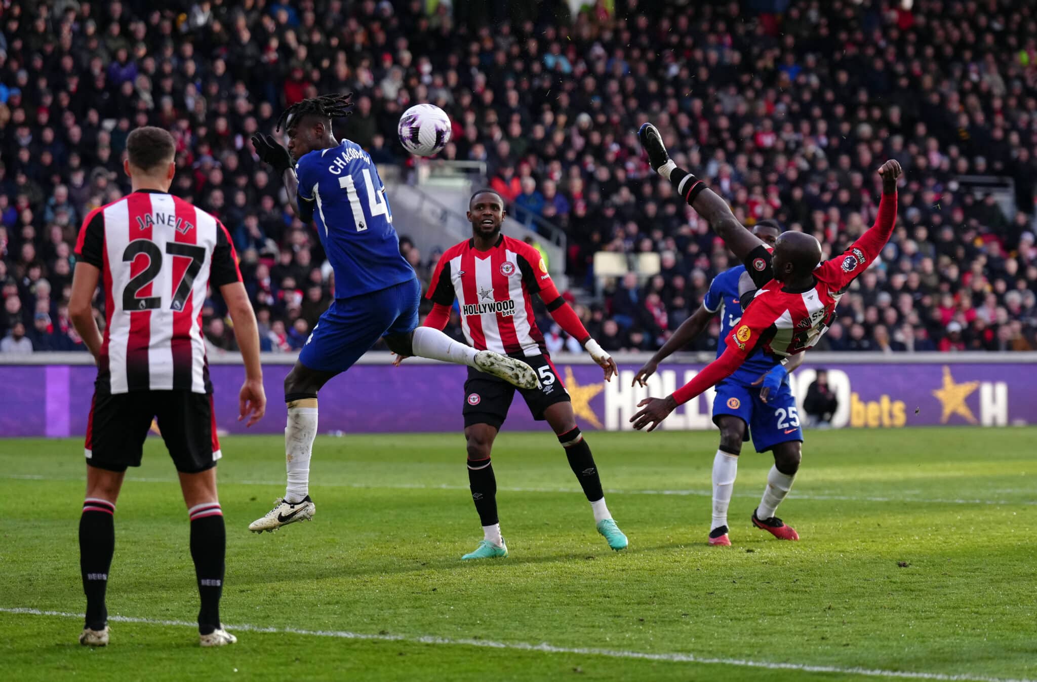 Yoane Wissa of Brentford is a strong contender for the PL Goal of the Month with his scissor kick on Matchday 27 against Chelsea. His goal came as a crucial moment, securing the second goal of the game and helping Brentford secure a draw against Chelsea.