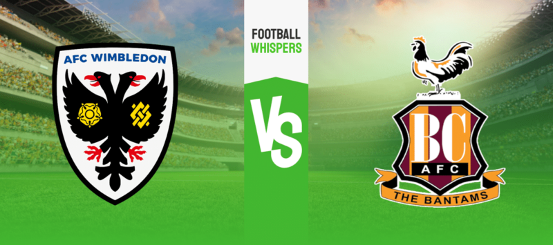Wimbledon will be looking to continue the pressure for the first place in the League Two standings as they face Bradford.