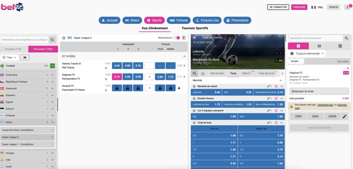 Les joueurs ont la possibilité de choisir les paris simples, les paris multiples, les paris combinés et les paris système. Cela permet d’augmenter les cotes et les gains potentiels. De plus, vous n’avez pas le classique 1, X, 2, vous pouvez aussi miser sur les buts, les écarts, les vainqueurs à la mi-temps…