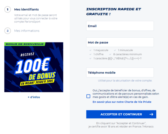 - Mentionner le code promo Parions Sport lors de son inscription pour obtenir des promotions et des avantages à l’ouverture de son compte.