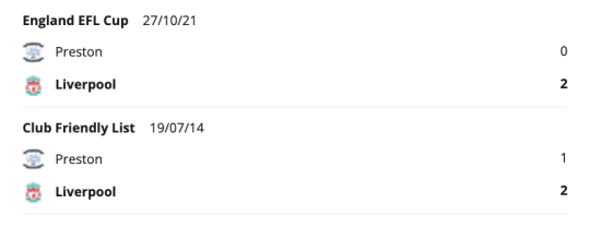 A Liverpool ritkán találkozott a Prestonnal, mivel általában más osztályban szerepeltek, de az utolsó négy összecsapásukat megnyerték másodosztályú ellenfelükkel szemben. A legutóbbi győzelem egy 2–0-s siker volt az EFL Kupa negyedik fordulójában, 2021 októberében.