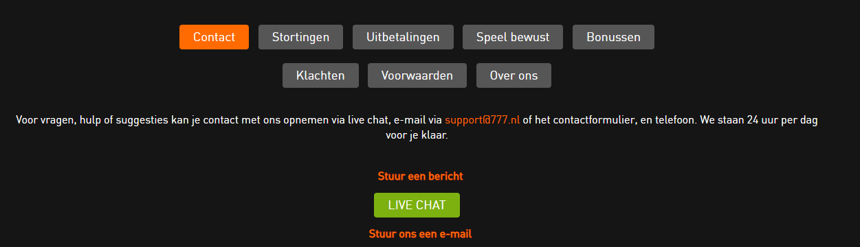 Voor iedereen die snel en eenvoudig antwoord op een vraag willen hebben, is er de F.A.Q-pagina. Dit onderdeel biedt hulp bij specifieke vragen m.b.t stortingen, bonussen of zelfs klachten. Zoals hierboven al aangegeven, kun je ook een mail sturen naar [email protected].