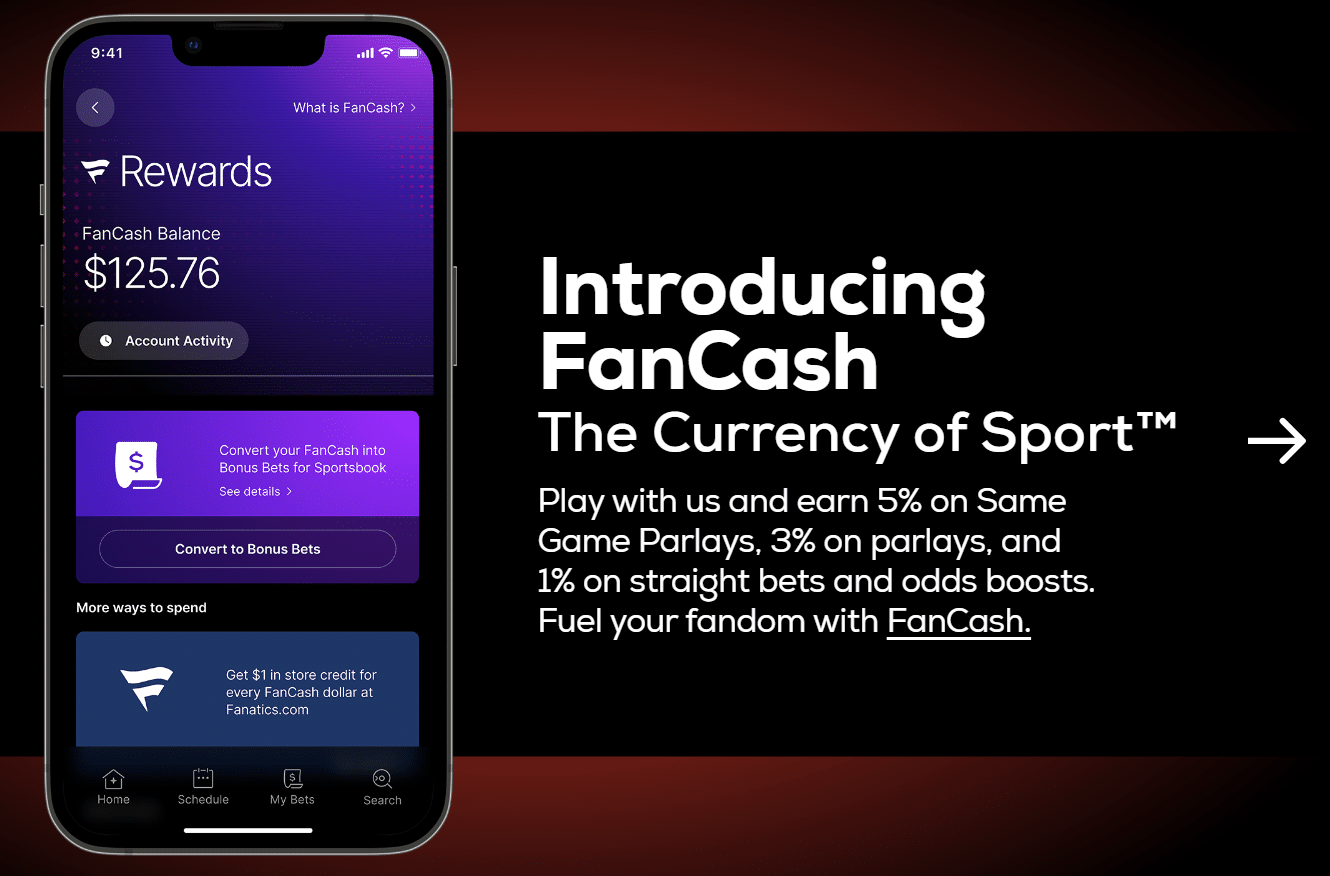 Same-game parlays earn the most FanCash at 5% of your stake. It doesn’t matter if you lose or win. You’ll also get 1% back in FanCash on straight wagers and 3% on parlays. The real magic happens when you have collected enough, as you can redeem FanCash for Fanatics merchandise like t-shirts, jerseys, hats, and whatnot.