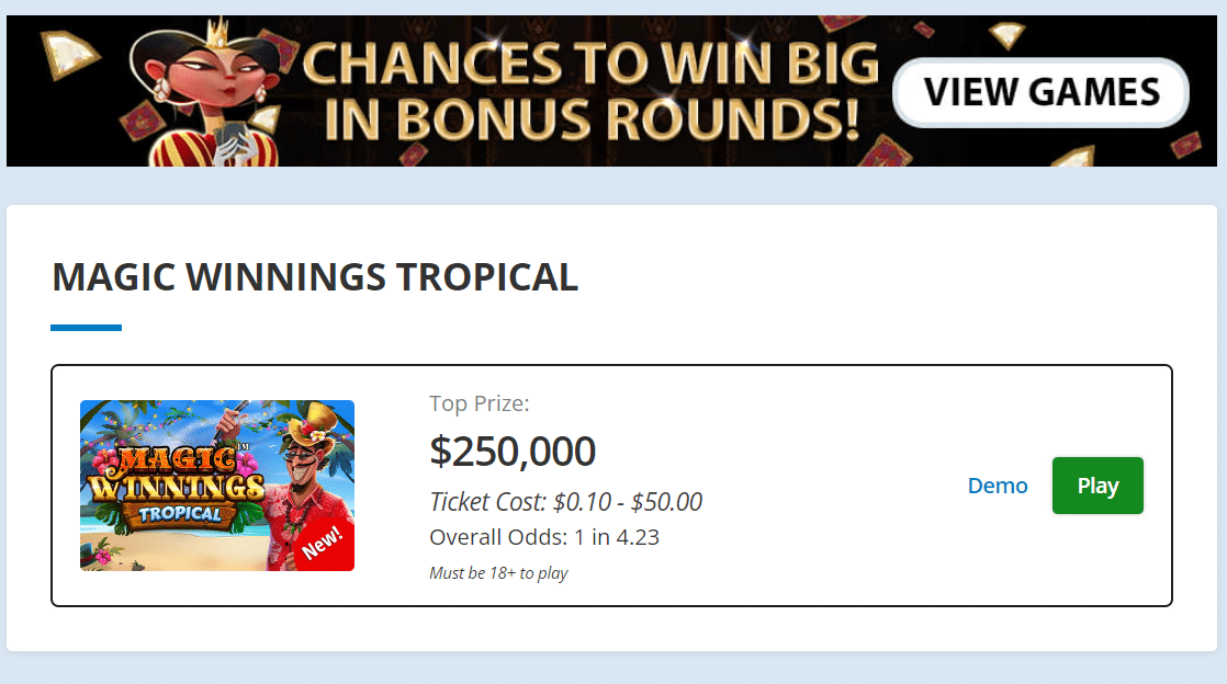 - Expanded Game Selection – Enjoy more games than retail stores with a constantly updated catalog of Instant Win, Keno, and Draw games.